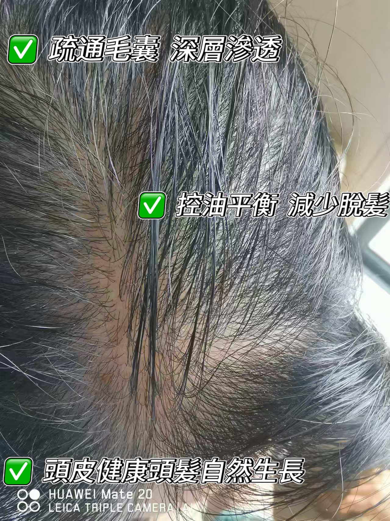 深層清潔: 納米微脂囊滲透至毛囊深處,溶解並帶走長期積聚的頑固油脂、皮脂碎屑和環境污染物,徹底疏通「營養通道」。