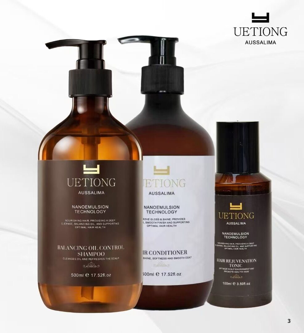 傳統洗髮水: 僅能清潔表面油脂,分子太大無法進入毛囊,營養無法有效吸收,治標不治本。